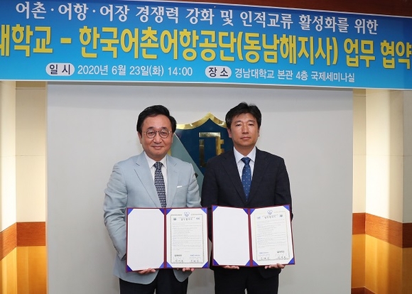경남대학교는 23일 오후 본관 국제세미나실에서 한국어촌어항공단 동남해지사와 어촌·어항·어장 경쟁력 강화를 위한 업무협약을 체결했다.