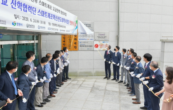 창원대학교는 24일 창원대학교 종합교육관 앞에서 ‘스마트제조혁신 선도대학사업단’의 현판식 행사를 개최했다고 사업단의 본격적인 운영에 들어갔다고 밝혔다.