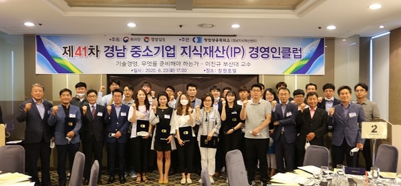 창원상공회의소 경남지식재산센터는 23일 창원호텔에서 개최한 '제41차 경남 중소기업 지식재산(IP) 경영인클럽'에서 2020년 글로벌 IP스타기업으로 선정된 기업에 지정 확인서를 수여했다.
