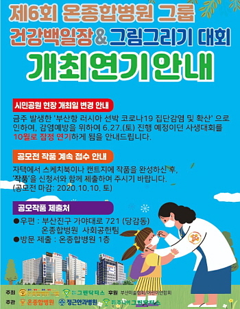 온종합병원이 오는 27일 개최할 예정이었던 ‘제6회 건강백일장·사생대회’를 오는 10월로 잠정 연기한다고 25일 밝혔다.