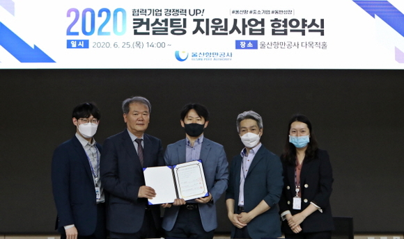 울산항만공사(이하 UPA)는 지난 25일 ‘2020년 울산항 중소협력기업 컨설팅 지원사업’ 착수를 위해 수혜기업인 제이슨 버먼트와 컨설팅 수행기관인 디지털지엠에스컨설팅과 협약식을 가졌다.