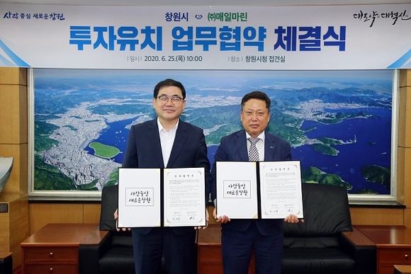 경남 창원시는 25일 부산 소재 유통물류업체 ㈜매일마린과 투자액 331억원, 신규 고용 30명 규모의 투자협약(MOU)를 체결했다.