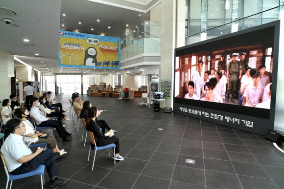 이번 영상 상영은 동서발전이 지역사회와의 상생협력을 위해 지역 현안사업, 시민 편익 정보 등을 공유하고자 본사 로비에 설치한 대형LED 전광판(동서삼창)을 통해 이뤄졌다.