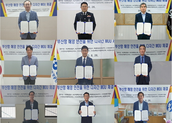 부산해양경찰서(부산해경), 부산항만공사(BPA), 부산지방해양수산청(부산해수청) 등 해양 관련 9개 기관이 26일 부산항 해양안전을 위해 안전 업무협약을 온라인으로 체결했다고 밝혔다.