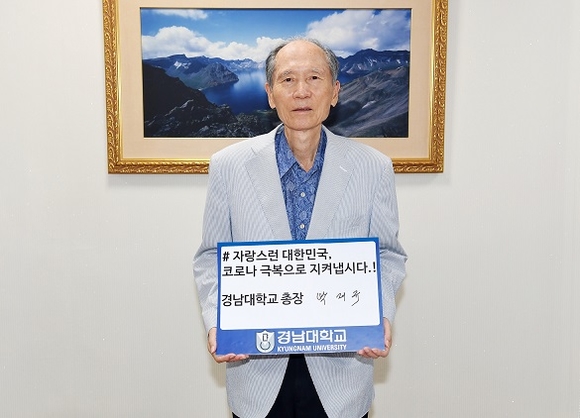 박재규 경남대학교 총장이 지난 24일 신종 코로나바이러스 감염증(코로나19) 극복을 위한 '희망캠페인 릴레이'에 동참했다.