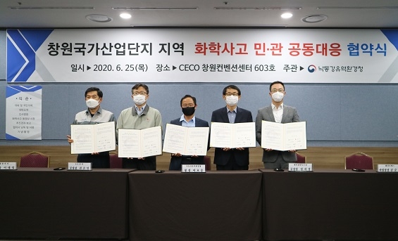 낙동강유역환경청은 25일 창원컨벤션센터 회의실에서 창원국가산업단지 주요 유해화학물질 취급업체(32개사)와 화학사고 예방, 신속한 대응·수습을 위한 '민·관 공동대응 업무협약'을 체결했다.
