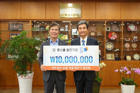 동아대학교는 엄전중 세무법인 송림 대표세무사가 법학전문대학원(로스쿨) 발전기금 1000만원을 기부했다고 29일 밝혔다.