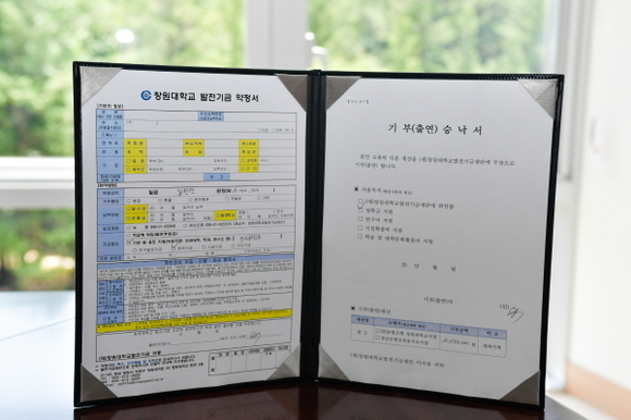 이 기부자는 최근 창원대 대학발전협력원에 전화로 “기부를 하고 싶다”는 의사를 전해왔으며, 이후 대학 담당자가 기부자의 거주하는 곳을 방문해 장학기금 기탁이 이뤄졌다.