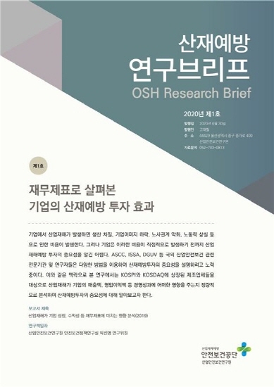 연구브리프 제1호 주제는 ‘재무제표로 살펴본 기업의 산재예방 투자 효과’로, KOSPI 등에 상장한 기업을 대상으로 산업재해가 발생한 기업의 매출액과 영업이익 등 산업재해와 경영성과 간 상관관계에 대한 연구 내용을 요약·정리했다.