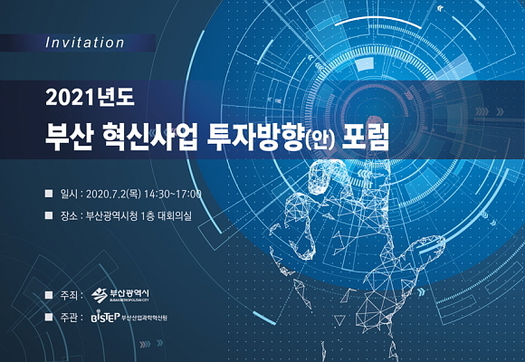 부산산업과학혁신원(BISTEP)과 부산시가 오는 2일 오후 3시 시청 1층 대회의실에서 ‘내년도 부산 혁신사업 투자 방향’ 포럼을 연다고 1일 밝혔다.