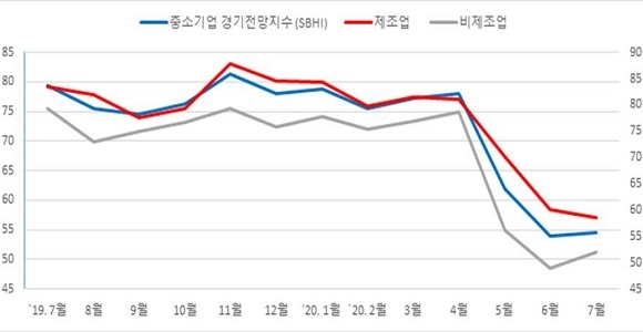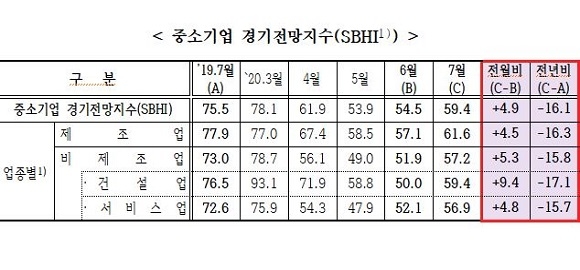 조사결과 부산, 울산지역 중소기업의 7월 경기전망지수는 ‘59.4’로 전월대비 4.9%p 상승하며 두 달 연속으로 반등세를 보였다.
