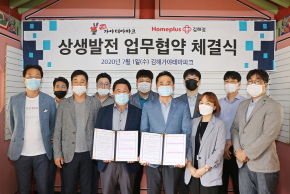 (재)김해문화재단 김해가야테마파크는 1일 오후 1시 30분 가야테마파크 회의실에서 홈플러스 김해점과 ‘인근 관광시설 상생 및 상호 혜택 강화를 위한 업무협약’을 체결했다고 밝혔다.
