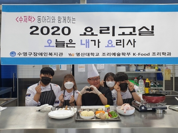 조리예술학부는 지난달 24일 수영구 장애인복지관에서 재가 장애인의 일상생활 자립심 향상을 위한 ‘2020 요리교실_오늘은 내가 요리사’ 동영상 촬영 봉사활동을 진행했다.