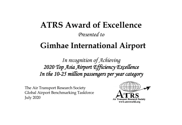 한국공항공사는 공사가 운영하는 김해국제공항과 제주국제공항이 세계항공교통학회(ATRS)의 ‘2020 공항운영 효율성 평가’에서 규모별 아시아 1위를 수상했다고 3일 밝혔다.