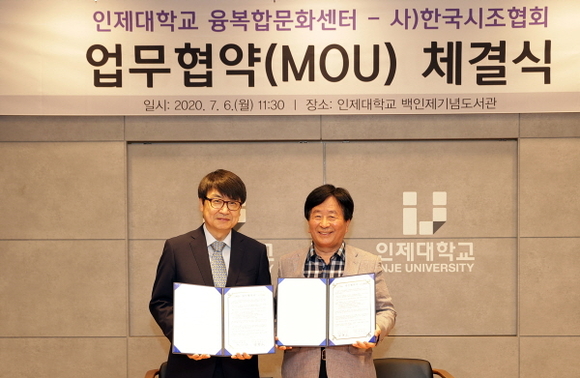 인제대학교 백인제기념도서관 융복합문화센터와 한국시조협회가 6일 백인제기념도서관 인문교양세미나실에서 한국의 시조문화를 활발히 보급하고자 업무협약을 체결했다.