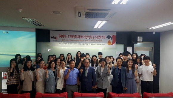 정진혁 교수는 4차산업혁명과 인공지능이 만드는 미래사회의 변화와 퍼스널 브랜딩으로 자신을 마케팅하는 5단계를 제시하고 미디어를 활용한 브랜딩과 유튜브 성공사례를 소개하며 “자신의 가치를 찾아 다양한 형태로 스토리텔링 하는 것이 중요하다”라고 강조했다.