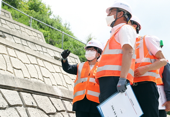 이날 충북도 영동군 용산면에 있는 현장에서 김진숙 사장은 “다가오는 장마철을 대비해 비탈면 안전관리에 조금의 소홀함도 없도록 최선을 다해 달라”고 직원들에 당부했다.