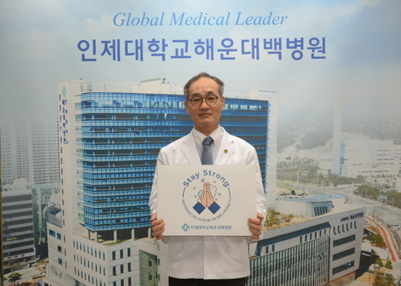 인제대학교 해운대백병원 최영균 원장이 코로나19를 함께 극복하자는 응원의 메시지를 전달하는 ‘스테이 스트롱(Stay Strong)’ 캠페인에 동참했다.