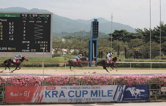 이번 'KRA컵마일' 대상경주는 코로나19 확산 방지를 위해 무고객 경마 시스템에서 개최됐으며, 마사회 홈페이지를 통해 경주 영상과 결과를 확인할 수 있다.