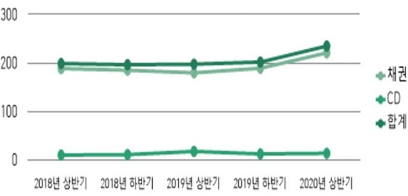 또 CD의 등록발행 규모는 약 14조원으로 전년동기 대비 21.8%(3조 9000억원) 감소한 반면 직전반기 대비 10.2%(1조 3000억원) 증가했다.