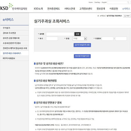 혹 실물주권을 보유하고 있거나 보유한 적이 있는 투자자는 예탁결제원 홈페이지 내 ‘실기주과실 조회 서비스’ 메뉴에서 본인 소유의 실기주과실 존재 여부를 확인할 수 있다.