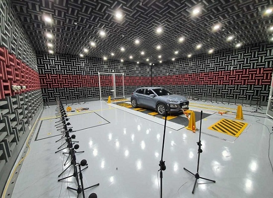 소음 측정에 활용된 넥센타이어 중앙연구소 무향실은 100개 이상의 최첨단 센서로 소음에 대한 다양한 원인과 성능 분석이 가능하며 국내 최초 4드럼 실험 설비가 마련돼 실제 차량으로 시험을 진행하고 있다.