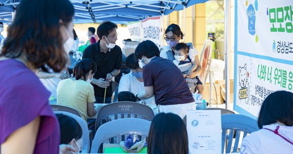 한국시설안전공단, 주택관리공단, 한국승강기안전공단, 한국세라믹기술원, 한국저작권위원회 등 경남혁신도시에 있는 5개 공공기관이 공동 주최하고 경남사회적가치센터가 주관한 ‘모모장터’(모으고 모이는 직거래 장터)가 11일 진주시에 있는 시설안전공단 인재교육관 주차장에서 열렸다.