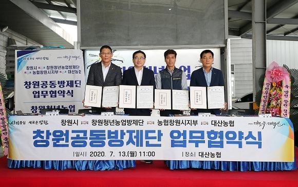 시는 이날 대산농협에서 창원청년농업방제단, 농협창원시지부, 대산농협과 농작물 병해충이 급격히 발생하거나 확산이 우려될 때 체계적이고 신속한 대응을 위해 창원공동방제단 업무협약을 체결했다고 밝혔다.