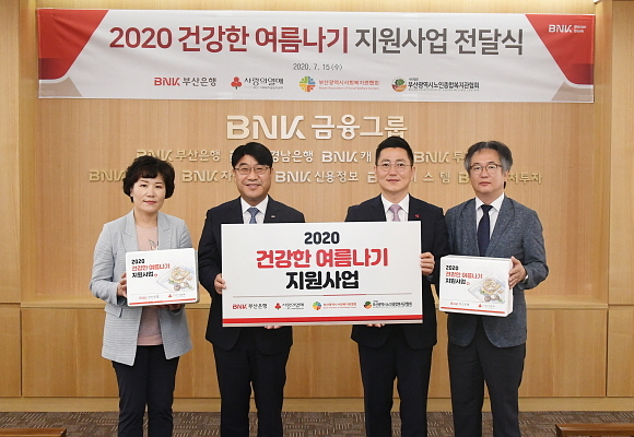 BNK부산은행이 15일 부산은행 본점에서 부산사회복지공동모금회, 부산노인복지관협회, 부산종합사회복지관협회와 함께 ‘어르신 건강한 여름나기 지원사업 전달식’을 진행했다고 밝혔다.