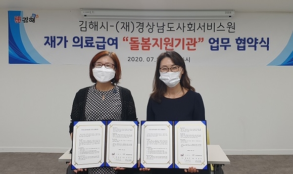 김해시는 15일 경남사회서비스원 김해시종합재가센터와 퇴원한 의료급여수급자에게 집에서 필요한 돌봄서비스를 제공하는 거점기관 업무협약(MOU)을 체결했다고 밝혔다.