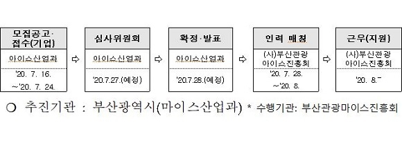 시는 이후 심사위원회 심의를 거쳐 오는 28일경 선정 결과를 발표할 예정이다. 이어 수행기관인 ㈔부산관광마이스진흥회에서 사업장과 청년을 매칭해 내달부터 근무를 시작하게 할 계획이다.
