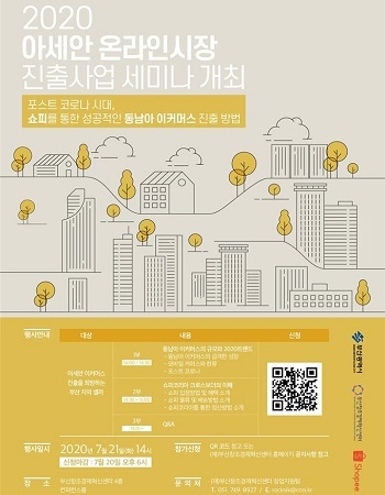 한편 시는 오는 21일 오후 2시 부산창조경제혁신센터 4층 콘퍼런스룸에서 ‘포스트 코로나 시대 성공적 동남아 e커머스 진출 방법’을 주제로 한 세미나도 개최할 예정이다. 참여를 원하는 기업은 부산창조경제혁신센터 홈페이지 또는 대표전화로 문의하면 된다.
