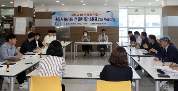 한국해양대는 지난 17일 오전 어울림관 2층 맘스터치에서 도덕희 총장 주관으로 총학생회 비상대책위원회와 ‘코로나19 극복을 위한 총장과 총학생회 간 열린 공감 소통 캔미팅’을 갖고 대학의 등록금 반환 정책을 설명한 뒤 학생들의 의견을 수렴했다.