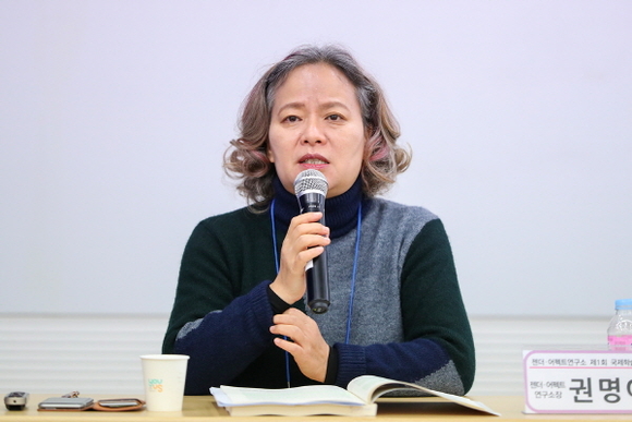 젠더·어펙트연구소 제1회 국제학술대회에서 권명아 교수가 발표하고 있다. (사진=동아대 제공)