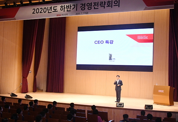BNK부산은행이 지난 17일 부산은행 본점 2층 대강당에서 경영진과 부실점장이 참석한 가운데 ‘2020 하반기 경영전략회의’를 진행했다고 20일 밝혔다.