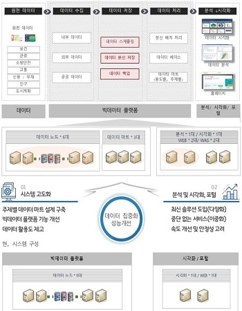 먼저 빅데이터 시스템 고도화는 빅데이터 플랫폼 기능 개선과 다양한 주제별 데이터 분석 결과를 시각화하고 사용자 중심의 콘텐츠를 구성함으로 빅데이터 포털을 전면 개편하는 것이다.