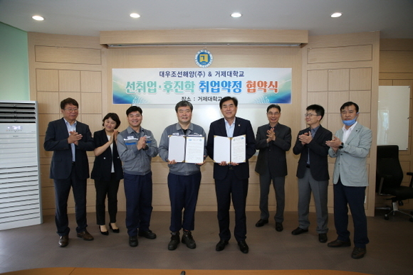 이번 선취업·후진학 협약은 2019년에 시작한 프로그램으로 특성화고 졸업예정자를 대상으로 한다. 거제대와 협약을 맺은 산업체에 채용과정을 거치게 한 뒤, 합격한 인적 자원에 대해 각 산업체가 원하는 인재로 양성·배출하는 고교연계프로그램이다.