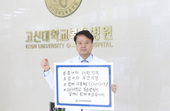 최영식 병원장은 희망 메시지로 ‘#힘내라 대한민국 #힘내라 부산시민 #함께 극복하는 COVID 19 #고신대학교복음병원이 끝까지 함께 하겠습니다’의 내용을 전달했다. 이어 다음 주자로 동아대병원 안희배 병원장을 지명했다.