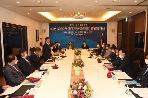 경남 김해시는 21일 김해아이스퀘어호텔에서 코로나19로 어려움을 겪고 있는 기업의 고충을 함께 해결해 나가기 위해 김해시기업체협의회와 간담회를 개최했다.