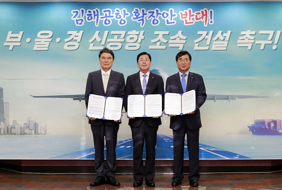 부산상공회의소(부산상의)와 울산상의, 경남상의가 공동으로 국토부의 김해공항 확장안에 대해 한목소리로 반대의견을 나타내며 신공항을 조속히 건설하라고 촉구하는 성명을 22일 발표했다.