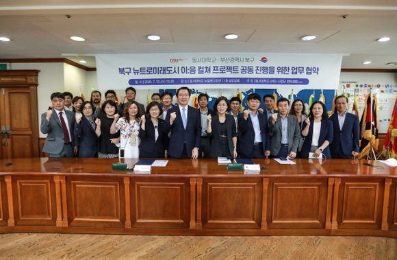 동서대학교 사회맞춤형 산학협력 선도대학(LINC+, 링크플러스) 육성사업단은 지난 22일 동서대 뉴밀레니엄관에서 부산 북구청과 ‘북구 뉴트로 미래도시 이:음 컬쳐 프로젝트’ 공동 진행을 위한 MOU를 체결했다고 23일 밝혔다.