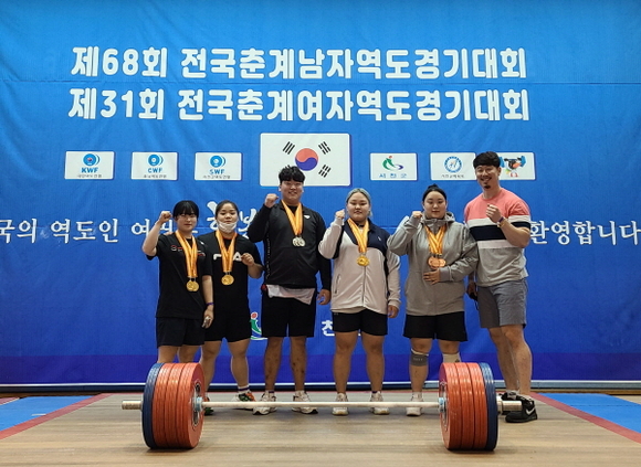 지난 16일부터 23일까지 충남 서천 군민체육관에서 열린 이번 대회에서 윤하제(체육교육과 3) 선수가 –87kg급에, 이소정(스포츠과학과 2) 선수가 +87kg급에 출전해 인상 1위, 용상 1위, 합계 1위를 기록하고 각각 금메달 3개씩을 목에 걸었다.