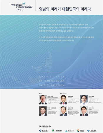 이번 포럼은 코로나19 감염증 확산이 장기화하며 지역별 피해가 심각해지자 포스트 코로나 시대에 맞는 영남의 미래를 논하기 위해 마련된 것이다. 특히 지난 2015년 영남권 시·도지사협의회 이후 처음으로 5개 영남권 광역지자체장이 모두 모인다.
