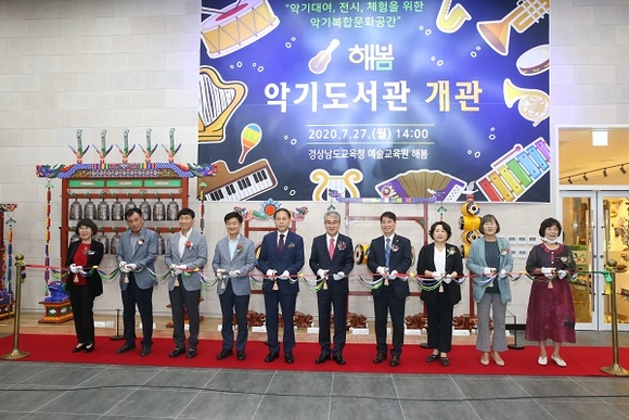 경남도교육청 예술교육원 해봄은 27일 다양한 악기의 정보와 지식, 체험과 문화 콘텐츠를 제공하는 악기복합문화공간인 '해봄 악기도서관'을 개관했다.
