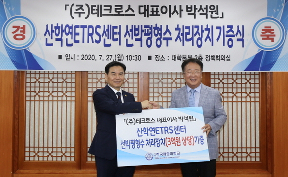 ㈜테크로스가 3억원 상당의 ‘선박평형수 처리장치(BWMS, Ballast Water Management System)’를 한국해양대학교에 기증했다.