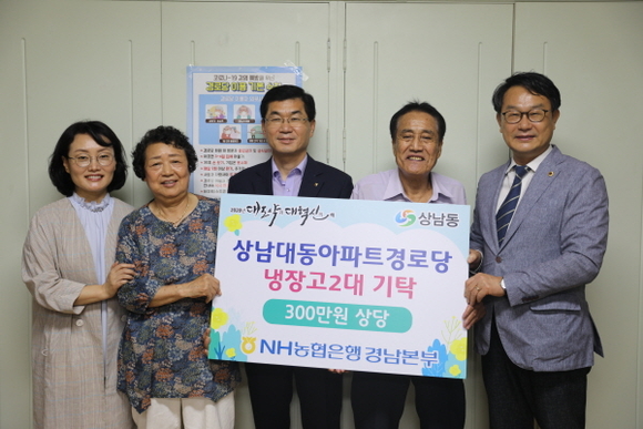NH농협은행 경남본부는 28일 사회취약계층에 대한 사랑나눔의 일환으로 창원 상남동 소재 아파트 경로당을 방문해 300만원 상당의 냉장고를 전달했다고 밝혔다.