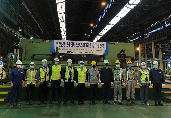 부산항만공사(BPA)가 오늘(28일) 한진중공업 영도조선소에서 열린 ‘부산항 신항 서 ‘컨’ 2-5단계 트랜스퍼크레인 설치사업’의 강재 절단식에 참여했다고 밝혔다.
