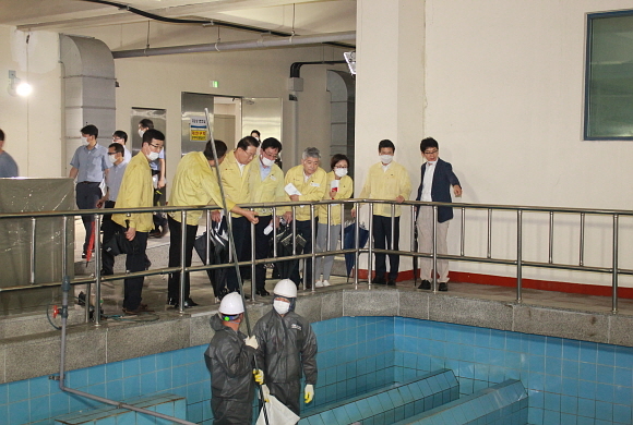 최근 수돗물 유충 발견 사태가 전국적으로 확산하는 가운데 부산시의회는 통합당 소속 의원 4명과 이근희 부산상수도사업본부장 등이 지난 27일 덕산정수장 현장점검을 시행했다고 28일 밝혔다.