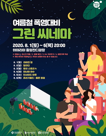 올해 처음 열리는 그린씨네마는 여름밤 더위를 잊힐 가족 영화 프로그램으로 시민공원의 랜드마크 공간인 중앙잔디광장에서 무료로 진행된다.