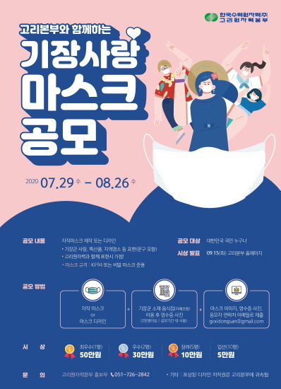 한국수력원자력 고리원자력본부는 지역 주민이 직접 지역 사랑을 표현한 창작 마스크를 만드는 ‘기장사랑 마스크 공모전’을 내달 26일까지 진행한다고 밝혔다.